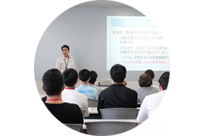 「自動車整備士について」「本校の教育方針と特色」「在学中の資格取得と就職状況」「奨学制度や入試制度」を分かりやすく紹介します。