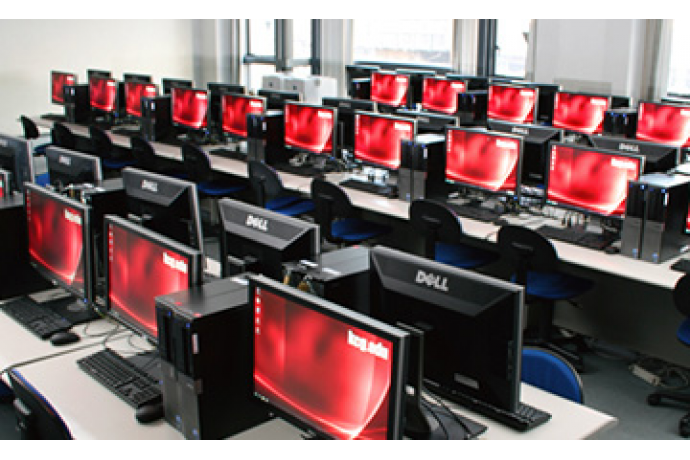 6階ホールの大スクリーンで学科や学校生活をわかりやすく紹介します。